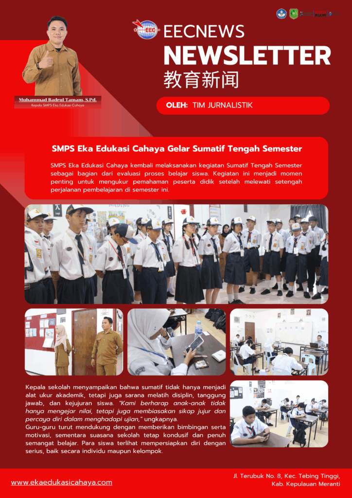 SMPS Eka Edukasi Cahaya kembali melaksanakan kegiatan Sumatif Tengah Semester sebagai bagian dari evaluasi proses belajar siswa. Kegiatan ini menjadi momen penting untuk mengukur pemahaman peserta didik setelah melewati setengah perjalanan pembelajaran di semester ini.